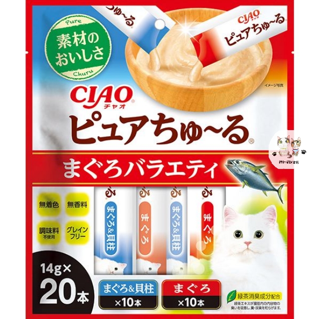 CIAO Pure 列無添加無穀物糊仔(14g x 20 條) 🛫🛫日本直送🛫🛫 Exp Date: 2025/08 日本CIAO Pure 系列糊仔,無添加、無穀物、無色素、無香料、無調味,主子可以食到日本當地新鮮食材最天然、最原始嘅味道,非常美味健康!! 😋😋😋 味道選擇 : • 金槍魚混味 • 金槍魚鰹魚混味