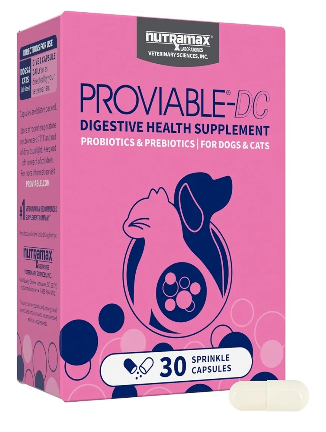 美國 Nutramax Proviable-DC 寵物益生菌 Proviable DC 寵物益生菌來自美國獸醫師推薦第一品牌Nutramax。 產品獨家專利配方,內含七種不同種類活的益生菌,有效維持毛小孩的腸道健康。 ✅️Enterococcus faecium 屎腸球菌 ✅️Streptococcus thermophilus 嗜熱鏈球菌 ✅️Lactobacillus acidophilus 嗜酸乳桿菌 ✅️Lactobacillus bulgaricus 保加利亞乳桿菌 ✅️Lactobacillus casei 乾酪乳桿菌 ✅️Bifidobacterium bifidum 比菲德氏菌 ✅️Lactobacillus plantarum 植物乳杆菌 什麼是Proviable? Proviable 是一種臨床研究的多菌株益生菌補充劑,適用於狗和貓,含有數十億 CFU 的有益細菌,有助於支持健康的腸道平衡。 Proviable含有益生元和益生菌,可維持腸道平衡以及健康。 益生元是腸道益生菌所需要的特殊營養素,有助於促進腸道內益生菌的生長。 獨家專利配方 ✎恢復腸道平衡 每一膠囊含有50億CFU(菌落形成單位)益生菌,內含七種不同種類活的益生菌,可幫助腹瀉消化改善,重建腸胃道的正常菌種平衡,回復正常的菌種種類和數量。 ✎保護腸內菌欉 專利製成可保護益生菌的活性以及穩定性,避免胃酸破壞。 ✎維持腸胃健康 添加果寡糖作為益菌的食物來源,可增加腸內益菌的繁殖並可抑制壞菌的增生。 【使用說明】 所有的狗貓,無論體重大小,一天一顆。或依照獸醫指示使用。嗜口性佳可直接食用或混合食物一起服用。 【產地】美國
